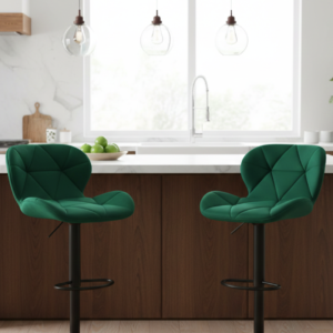 Be the first to review “Tabourets de Bar Chic en Velours Vert Émeraude – Design Diamant et Pied Noir Réglable”