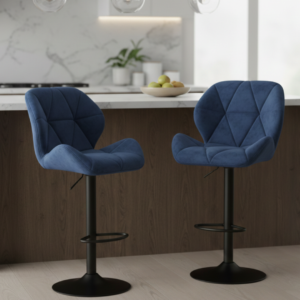 Que ce soit pour un usage domestique ou professionnel, ce tabouret combine parfaitement le style “Horeca” (Hôtellerie-Restauration) et le confort d’un fauteuil de salon. Sa couleur bleue profonde associée au noir mat apporte un contraste chic qui rehausse immédiatement la décoration de votre pièce.