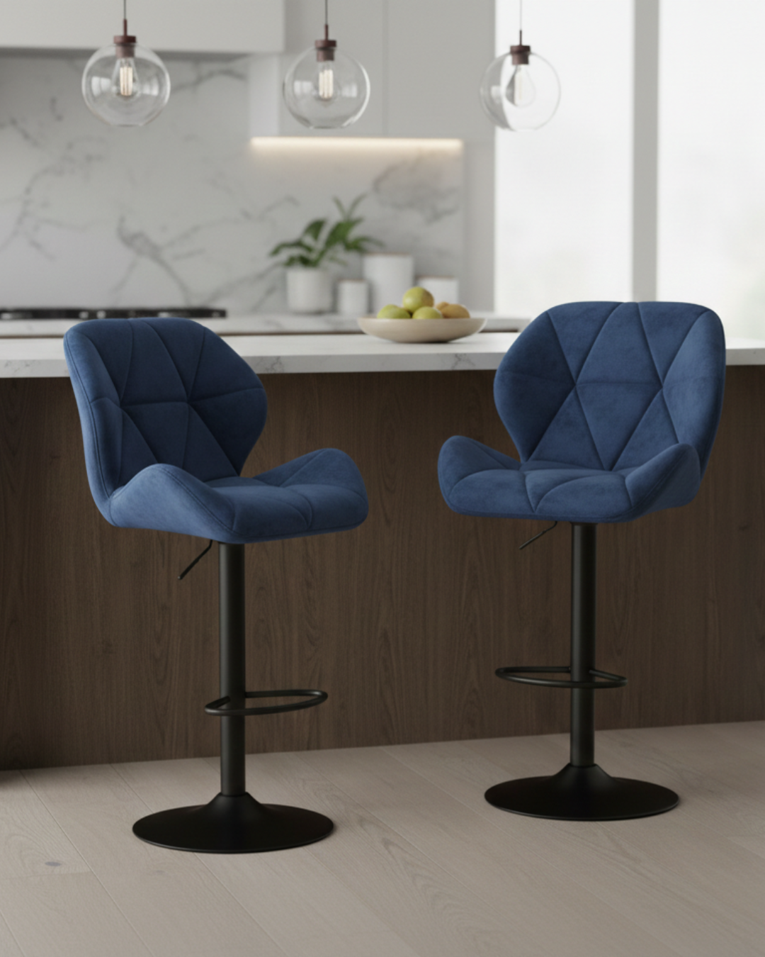 Confort Supérieur : Revêtus d’un velours doux de haute qualité, ces tabourets offrent un toucher soyeux. Le dossier ergonomique incurvé épouse la forme du dos pour un maintien optimal.